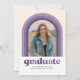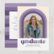 Diese lustige Abschluss-Ankündigung verfügt über einen Bogen mit verschiedenen Schattierungen von lila um einen Single Foto. Die Rückseite der Karte hat ein koordinierendes Streifenmuster sowie Platz für eine persönliche Nachricht oder Einladungsdetails für eine Abschluss-Feier.