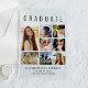 Elegante Klartext-Abschluss-Ankündigung, den Graduierten mit "GRADUATE" über die Spitze in großen Typografie, eine 7-Foto-Collage und ihren Namen, Klassenjahr und Schule in der modernen Typografie zu feiern.
