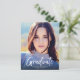 BUDGET Modern Brush Stroke Script Foto Abschluss Ankündigung mit Ihrem Foto und unserem trendigen Skript-Overlay in Weiß. Der Rücken ist ein modernes marineblau, aber alle Schriftart und Farben sind leicht zu ändern. Stilvolle Wirble Sets aus Ihrem Foto. Ideal für die Feier Ihres Absolventen! Chic und Liebling. **Unser BUDGET-Papier ist kleiner und zarter, aber trotzdem schön!** Wenn Sie Hilfe oder passende Artikel benötigen, kontaktieren Sie uns bitte unter cedarandstring@gmail.com.