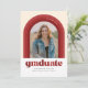 Diese lustige Abschluss-Ankündigung verfügt über einen Bogen mit verschiedenen Rottönen rund um ein Single Foto. Die Rückseite der Karte hat ein koordinierendes Streifenmuster sowie Platz für eine persönliche Nachricht oder Einladungsdetails für eine Abschluss-Feier.