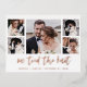 Diese einfache, Rose Goldfolie Hochzeitsankündigung Postcard verfügt über moderne, lässige Schrift-Typografie, die "wir gebunden den Knoten", mit einem Multi-Foto-Gitter von fünf Fotos. Eine stilvolle Art, Freunde und Familie lassen, um über Ihre Entfaltung oder über die Ehe zu erfahren.