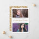 Diese stilvolle Abschluss-Ankündigung zeigt ein Blumenmuster über einem benutzerdefinierten Hintergrund (in Gold dargestellt). Zwei Fotovorlagen!
