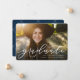Ein spielerischer, aber einfacher Script-Absolvent sitzt am Ende eines horizontalen Fotos. Der benutzerdefinierte Text enthält Platz für den Namen des Absolventen und auch die Schule und das Jahr Details. Der klassische Backer der Marine hat ein einfaches Rastermuster, und die Farbe kann geändert werden, indem man auf "Weiter anpassen" klickt. Mit diesem Design verkünden Sie die Leistung Ihres Absolventen an Freunde und Familie!