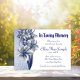 Schönes königsblau mit babyblauen Blume und Wirbel personalisierte Beerdigung und Gedenkankündigung und Einladungsvorlage. Diese wunderschöne blaue Gedenkankündigung und Begräbnisankündigung lässt sich leicht an Ihre Veranstaltung anpassen, indem Sie einfach den Button "Anpassen Sie es!" auswählen, um Ihre Veranstaltungsdetails, den Stil des Schriftartes, die Größe des Schriftartes und die Schriftart und den Wortlaut hinzuzufügen. Bitte beachten Sie: Alle Aufkleber, Karten und Einladungsdesigns, die Sie auf Zazzle finden, sind gedruckte Grafiken ohne wirkliche Juwelen, Bögen, Höhen, Prägen oder Beilagen.