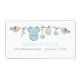 Elegantes BABY SHOWER Label mit Baby-Blue Kleidung. Erhältlich auch in rosa. Klicken Sie auf die Schaltfläche Anpassen, um die Informationen auf dem Etikett durch Ihre Informationen zu ersetzen.