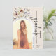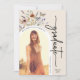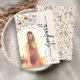 Moderne Ankündigung eines Blumenstuhls. Diese stilvolle und moderne Graduiertenparty lädt zu wunderschönen handbemalten Aquarellfarben-Wildblumen ein, die als hübsches Bouquet und elegantes Kalligrafiebeschreiben angeordnet sind. Die Rückseite weist ein schönes Koordinationsmuster auf. Entsprechende Produkte finden Sie in der Boho Wildblume Abschluss Collection.