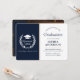 Mit dieser zeitlosen Marinekarte und dem weißen Abschluss verkünden Sie Ihre Errungenschaft stilvoll. Das elegante 2-Panel-Design besticht durch eine tiefe Seepromenade, die mit einem klassischen Graduierungsmütze und einem Lorbeerkranz-Motiv geschmückt ist, sowie durch eine kurze, inspirierend Botschaft. Das Backpanel hebt Ihr Foto mit einem eleganten Script-Overlay von "Graduate" und Platz für eine persönliche Glückwunschbotschaft. Ideal für feierliche Feste, diese Karte strahlt Professionalität und Eleganz aus.