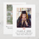 Eine moderne, rosa Rose Blumenankündigung mit einem weißen und schwarzen Rahmen über Ihrem Foto. Die Rückseite bietet ein weiteres Foto und mehr Details über Ihren Absolvent.