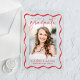 Feiern Sie Ihren Abschluss mit unserer Ankündigung des modernen Red Wavy Frame Acryl-Abschlusses mit einer kühnen roten Wellenlinie, die elegant ein senkrechtes Foto umrahmt. Das Wort "Graduate" wird wunderschön in einem handgeschriebenen roten Skript auf einem klaren Acrylhintergrund dargestellt und schafft so ein stilvolles und zeitgenössisches Aussehen. Passen Sie diese Ankündigung des Abschlusses mit dem Namen, der Schule und dem Abschluss Jahr für eine personalisierte Touch an. Dieses moderne und zeitlose Design eignet sich ideal für Absolventen der High School und Uni und ist ein atemberaubender Weg, diesen Meilenstein mit Freunden und der Familie zu teilen.