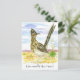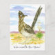 Eine bewegende Postkarte, die mit einem Straßenläufer in einer Wüstenlandschaft mit einer blühenden Yucca-Pflanze und lila Bergen illustriert mit Tinte und Aquarell dekoriert ist. Inspiriert von der Staat Vogel und Staat Blume von New Mexico. Genießen Sie das Land der Verzauberung Staat! Sie können den Text mit Ihren Daten bearbeiten.