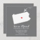 Moderne Ankündigung mit dem Staat von Pennsylvania mit einem roten Herz- und Flugzeug-Set auf grauem Hintergrund. Die Hintergrundfarbe kann einfach geändert werden, indem Sie auf Personalisieren klicken und dann klicken, um sich weiter anzupassen, um unsere Farbauswahl anzuzeigen. Von dort können Sie auch das Flugzeug & das Herz bewegen! Kontaktieren Sie unseren Shop, wenn Sie Hilfe benötigen oder einen anderen Staat benötigen.