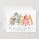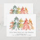 Elegante bewegende Ankündigung mit einem Aquarellwald abstrakter Kiefernbäume in gedämpftem Grün, Rot, Gold und Orange. Personalisieren Sie den Text "Unser neuer Neck des Waldes", Ihren Familiennamen und Ihre neue Adresse. Auf der Rückseite, personalisieren Sie Ihre Ankündigung detaillierter und enthalten Telefonnummern und E-Mail-Adressen, wenn gewünscht.