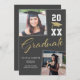 Mit diesen modernen Abschlussankündigungen mit zwei Fotos kündigen Sie die große Leistung Ihres Absolventen an. Passen Sie das Datum des Abschlusses mit Ihrer eigenen Farbe und Schriftart an. Dieses Design zeichnet sich durch Imitate Goldakzente aus. Details und zusätzliche Foto können auf der Rückseite hinzugefügt werden, einschließlich Einzelheiten zum Party.