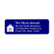 Label sagt, dass wir umgezogen sind und mit Ihrem Namen und Ihrer neuen Adresse personalisiert sein können. Das ist ein fünfeckiges Haus neben dem Text. Der Text ist weiß. Der Hintergrund ist marineblau.