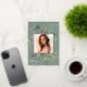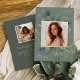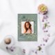 Unsere Eukalyptus & Sage Abschluss Ankündigung bildet ein Foto Ihres Absolventen mit einem eleganten quadratischen Rahmen von üppigen Aquarelleukalyptus und Salbei-grünen Blätter, mit echten Goldfolien-Trim auf einem Ton auf dem grünen Hintergrund. Personalisieren Sie das Unterrichtsjahr, den Namen und die Schule Ihres Absolventen. Fügen Sie der Rückseite eine persönliche Nachricht und ein zusätzliches Foto hinzu.