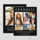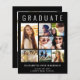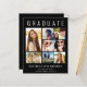 Elegante, preisgünstige Ankündigung von Black Abschluss, den Absolvent mit "GRADUATE" über die Spitze in großen weißen Typografie, eine 7-Foto-Collage und seinen Namen, Klassenjahr und Schule in modernen weißen Typografie zu feiern. Fügen Sie auf der Rückseite ein zusätzliches Foto und eine benutzerdefinierte Meldung hinzu.