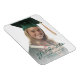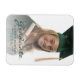 Moderner Abschluss-Ankündigungs-Magnet mit einem benutzerdefinierten vertikalen Foto. Das Wort "Graduate" erscheint in dunkelgrüner Schrift, mit dem Namen des Absolventen, Schule und Jahr des Abschlusses unten in Sans Serif Schriftart. Ersetzen Sie das Beispielbild einfach durch das Foto Ihres eigenen Absolventen. Ein Bildschirm mit weißem Farbverlauf trägt dazu bei, die Pop des Textes zu gewährleisten. Ideal für High School oder Uni-Abschluss.