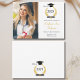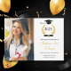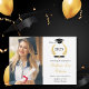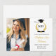 Feiern Sie stilvoll mit dieser einfachen und stilvollen Abschluss-Ankündigungskarte. Fügen Sie Ihr Lieblings-Foto und Details hinzu. Design bietet Klasse von 2025 in elegantem Skript mit der Abbildung von Lorbeerkranz, einem Grad Oberteil und Diplom. Ein Foto des Absolventen mit ihrem Namen und Details in einer Mischung aus stilvoller Schwarz-Gold-Typografie auf einem sauberen, weißen Hintergrund. Die Rückseite der Karte hat eine Nachbildung des Laurel Kranz-Designs. Einfach anzupassen. Herzlichen Glückwunsch!