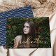 Elegante Ankündigung des Abschlusses mit dem horizontalen Foto des Absolventen mit "Graduate" in einer Goldfolie-Schrift. Personalisieren Sie die Titelseite der Ankündigung des Foto Abschluss, indem Sie den Namen des Absolventen, den Schulnamen und das Abschluss Jahr. Die Ankündigung kehrt zurück, um ein von der Marine und Weiß handgezeichnet Streifen Muster anzuzeigen.