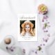 Elegante Abschluss-Ankündigung mit "Graduate" oben in einer Goldfolie-Kalligraphie-Skript angezeigt. Das Foto des Absolventen wird mit seinem Namen, seinem Schulnamen und seinem Abschluss im Folgenden dargestellt. Die Ankündigung des Foto Abschlusses kehrt zurück, um optionalen Text wie z.B. künftige Pläne, Graduierungsparty-Details usw. anzuzeigen. Die schicke Ankündigung des Abschlusses ist ideal, um den Abschluss von Absolventen der Oberstufe und der Uni anzukündigen.