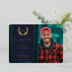 Eine elegante, moderne, geschlechtsneutrale Abschluss-Foto-Ankündigung. Mit einem vollblutenden Foto mit Farbüberlagerung und einem Lorbeerkranz in einer Folienfarbe Ihrer Wahl. Der Vorlagentext für die Details des Absolventen wird ebenfalls foliengepresst und ist vollständig anpassbar, sodass die Größe, der Stil und die Platzierung des Schriftartes geändert werden können. Die Rückseite bietet einen soliden Hintergrund und Vorlagentext für eine längere Meldung. Wenn Sie es vorziehen, keinen Text auf der Rückseite einzufügen, löschen Sie ihn einfach vor der Bestellung. Wenn Sie ein Foto auf der Kartenrückseite bevorzugen, löschen Sie sowohl den farbigen Hintergrund als auch den Vorlagentext und laden Sie Ihr eigenes Foto hoch. Das Design ist in anderen Farben in meinem Laden erhältlich.