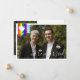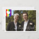 Charmante Hochzeitskarte mit Regenbogenflagge, gezeichnet mit unordentlichen Schlagstöcken und mit weißem Herz und weißem Rand verziert. Doppelseitige schwule Hochzeitskarte personalisiert mit Ihren Hochzeitskartons. Gay Eleopement Ankündigung mit Regenbogenfarbenstrichen und Ihrem Foto. Stolze Themenankündigung personalisiert mit Fotos.
