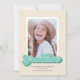 Diese lustige Single Foto Abschluss Ankündigung beinhaltet das Wort Graduate geschrieben in einem Retro-Stil Skript in den Tönen grün. Auf der Rückseite der Karte ist ein diagonales Streifen-Muster mit einer Farbe, die das Muster koordiniert.