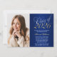 Eine elegante Drehbuch-Schriftart-Klasse von 2025 Graduation Party Ankündigungen. In Gold, Weiß und Marineblau dargestellt. Ideal für Abschluss, Uni-Abschluß oder Abschlussfeier. Designs sind flache gedruckte Illustrationen/Grafiken - NICHT AKTUELLE GOLD FOIL. Um Ihr Foto zu verkleinern und zu positionieren, klicken Sie auf den Knopf "IT KONZENTRIEREN".