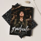Einfache Ankündigung des Abschlusses mit dem Foto des Absolventen mit "Absolvent" in realer Silber-Folie Skript. Personalisieren Sie die Titelseite der Ankündigung des Foto Abschluss, indem Sie den Namen des Absolventen, den Schulnamen und das Abschluss Jahr. Die Ankündigung kehrt zurück, um ein Muster von weißen Sprinklen mit einem schwarzen Hintergrund oder Farbe Ihrer Wahl anzuzeigen.