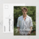 Eine elegante Abschluss-Ankündigung Postcard beinhaltet Ihr Foto, das Wort Graduate, Ihren Namen, Schule und Klassenjahr auf der Vorderseite und Ihre Ankündigungsdetails auf der Rückseite. Sie können die Formulierung auf der Rückseite von einer Ankündigung zu einer Graduiertenparty Einladung ändern. PASSENDE Artikel in unserer Sammlung.