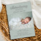 Unsere sanfte Grün-Foto-Geburtsankündigung ist eine einfache Möglichkeit, der Familie und Freunden die Ankunft Ihres neuen Freudenbündels anzukündigen! Der sanft gefärbte Hintergrund schafft einen sanften und angenehmen Hintergrund für dieses wertvolle Foto Ihres Kindes. Die Oberseite der Karte sagt: "Einführung, und erlaubt es Ihnen, den Namen Ihres neuen Kleinen hinzuzufügen. Fügen Sie dem Baby Gewicht, Länge und alle weiteren Informationen hinzu, die Sie möchten. Die Rückseite dieser Karte ist leer, aber mehr Fotos können hinzugefügt werden, wenn Sie Zazzles Design-Tool verwenden, um sie hochzuladen und so zu gestalten, wie Sie möchten
