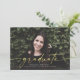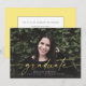 Diese vollständige Ankündigung von Foto Abschluss enthält das Wort "Absolvent" in gelben Schrift auf der anderen Seite geschrieben. Es hat Platz für den Namen des Absolventen, das Klassenzjahr und die Schule. Die Rückseite der Karte kann für eine persönliche Nachricht oder für die Einladungsdetails der Graduiertenparty verwendet werden.