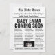 Einführung in unsere Pregnancy Announcement Newspaper Style Card! Erleben Sie die Vorfreude mit einer personalisierten Touch. Mit einem Foto, das mit viel Liebe zum Sonogramm ausgezeichnet wurde, ist diese Karte der perfekte Weg, um die freudigen Neuigkeiten mit Freunden und Familie zu teilen. Erleben Sie den Zauber, während Sie diese wunderbare Reise gemeinsam unternehmen.