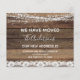 Budget Rustic Bauernhof Holz, String Light and Lace Wir haben Moved New Zuhause oder New Address Cards - beinhaltet schöne und elegante Skripttypografie für die besondere New Zuhause oder New Address Feier.
