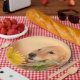 Anlass-goldener Retriever-Hund mit Blume Pappteller