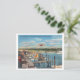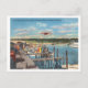 Anna Maria Island, Florida Vintage Reproduktion Postkarte aus den späten 1940er Jahren zeigt Menschen, die auf kleinen Docks an einem Jachthafen stehend sind, Boote und ein kleines Flugzeug über dem Kopf. Die Überschrift lautet: "Ein Fischerparadies auf Anna Maria Island, Florida."