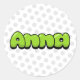 Der Name Anna in grünem Retro-Comic Bublegum-Stil Text.