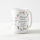 Tasse mit handgemalten botanischen Zweigen in Aquarellen und Anna's Hummingbirds und dem Gefühl "Die Zeit, die Kolibris zu beobachten, wird nie verschwendet."