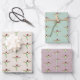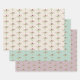 Niedliches Packpapier mit einem Anna-Kolibris-Muster auf beige, mint und zartem rosa Hintergrund.