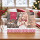 Festive vacances carte photo présente votre photo horizontale ou paysagère préférée dans un fond de saignement plein de joyeuses accents rouges et blancs. Une banderole rouge apparaît en haut à gauche et porte votre nom de famille et l'année, tandis que votre message personnalisé est placé sur le bas, au-dessus d'une bande à motif nordique en rouge et blanc.