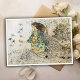 Weich und romantisch, mit hoffnungsvollen Schwalben, die nach oben fliegen, zelebriert diese Karte die Schönheit der Figur und das Detail der Kleidung, des Hintergrunds und der Blume. Diese Vintage Abbildung stammt von Annie French.