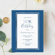 Sur le devant : Un arrière - plan bleu classique avec un cadre faux argent et blanc. Simple et élégant ! Modèles pour un nom et les détails de la fête. Le nom et le texte : 50ème anniversaire (ou n'importe quel âge) sont écrits avec un script de style écrit main, des lettres de couleur bleue. Parfait pour un anniversaire d'hiver, de printemps ou d'été nautique ! Retour : arrière - plan bleu classique. Conseil : Si vous ne voulez pas qu'il ressemble à une carte postale, cliquez sur customiser, allez à l'arrière et retirez le séparateur et le timbre postal.