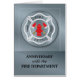 Félicitez quelqu'un au service des incendies pour l'anniversaire de son employé. Cette carte a un arrière - plan en argent avec un badge rond avec une borne d'incendie rouge et des axes, représentant le travail important qu'ils font. Carte parfaite pour souhaiter un joyeux anniversaire à quelqu'un avec son temps au service des incendies.