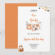 ANNIVERSAIRE HALLOWEEN PROJOYABLE FÊTE VIBE INVITATION Cute Halloween anniversaire invitation avec Spooktacular écrit dans une combinaison de polices amusantes, le double o's dans spook conçu pour ressembler à de grands yeux. Le texte est entouré d'étoiles, d'araignées et d'une chauve-souris. Et un mignon fantôme indique à vos invités le nom et l'âge de l'enfant d'anniversaire. Le dos est assorti à des rayures en noir, blanc et orange.
