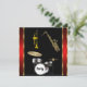 Anniversaire Musique Danse Invitation batterie saxophone trompette noir rouge or Invitation