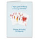 Une carte d'anniversaire pour quelqu'un qui aime jouer aux cartes. Un flot de coeurs royaux et les mots "J'espère que ton anniversaire aura des succès." Votre mari adorera cette carte d'anniversaire.
