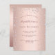 Une invitation moderne, élégante et glamour pour une fête d'anniversaire de 50e femme (ou de n'importe quel âge). Un faux rose or à l'apparence métallique arrière - plan avec un élégant faux rose or sprinkle. Le nom est écrit avec un rose moderne de couleur or foncé à la main écriture style. Modèles pour les détails de votre fête. Retour : arrière - plan rose d'or. Conseil : Si vous ne voulez pas qu'il ressemble à une carte postale, cliquez sur customiser, allez à l'arrière et retirez le séparateur et le timbre postal.