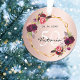 Un ornement pour un 50ème anniversaire girly et glamour (ou tout âge). Un arrière - plan rose à gradient or. Un cadre géométrique en faux or et des fleurs aquarellées, des fleurs en or bordeaux, rose et rose. Personnalisez et ajoutez une date, un nom et un âge de 50 ans. Le texte : Le nom est écrit en or rose foncé avec un script de style manuscrit moderne. Parfait comme décoration de fête, de faveur, de garde ou comme cadeau.
