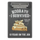 Urlaub! Ich überlebte Jahre auf dem Job. Personalisieren Sie dieses Design mit der Anzahl von Jahren, die Sie oder Ihr Mitarbeiter gearbeitet haben, und fügen Sie ihren Namen in die Binderseite! Diese lustige Idee zum Jubiläumsgeschenk ist das Richtige für einen Mitarbeiter mit einem Sinn für Spaß. Das Design weist einen abgefluteten Kuchen mit den Worten "Gute Arbeit, Kumpel" auf. Ein großartiges Dankeschön an die Mitarbeiter, das unvergesslich sein wird und Ihnen für ihr Jahr des Services eine Wertschätzung aussprechen wird!