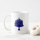 anniverssary cake mug in blue and white